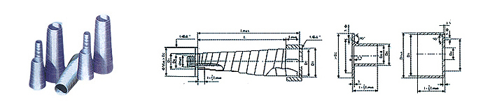 D1-保護套小端內(nèi)徑=dmaz+10毫米 dmax-被保護零件的直徑 D2-保護套大端內(nèi)徑 Lmin-壓縮長度 D3-大端法蘭內(nèi)徑=D2+6-8毫米 lmax-延伸長度 D4-小端法蘭外徑=D1-1-2毫米 L-允許行程 |